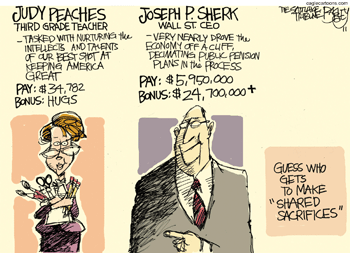 Now, “budget deficits” are the mantra to justify anything from House Republicans’ plan to slash half of WIC (nutrition for pregnant women and children up to age five) to Wisconsin’s Governor Walker’s assault on public workers. The real agenda is to break unions.