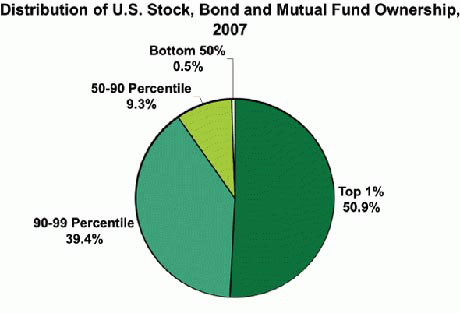 3. The Top 1 Percent Of Americans Own Half Of The Country’s Stocks, Bonds, And Mutual Funds: The Institute for Policy Studies illustrates this massive disparity in financial investment ownership, noting that the bottom 50 percent of Americans own only .5 percent of these investments: