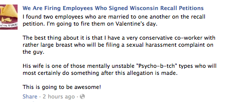 You are hereBlogs / CD's blog / Desperation: “We Are Firing Employees Who Signed Wisconsin Recall Petitions”
